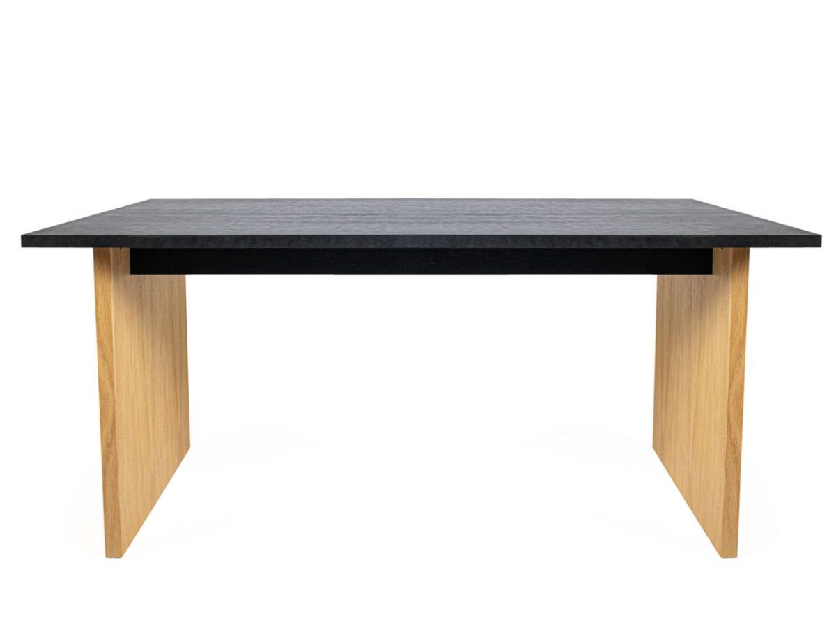 Clean-lined Scandinavian design, an ideal place to host family meals behind our Stripe dining table. that can comfortably seat up to six, is a stylish selection. Oak veneered dining table crafted stripes on side. Comes in (KD) and table can be purchased in two different variations oak and oak/black.