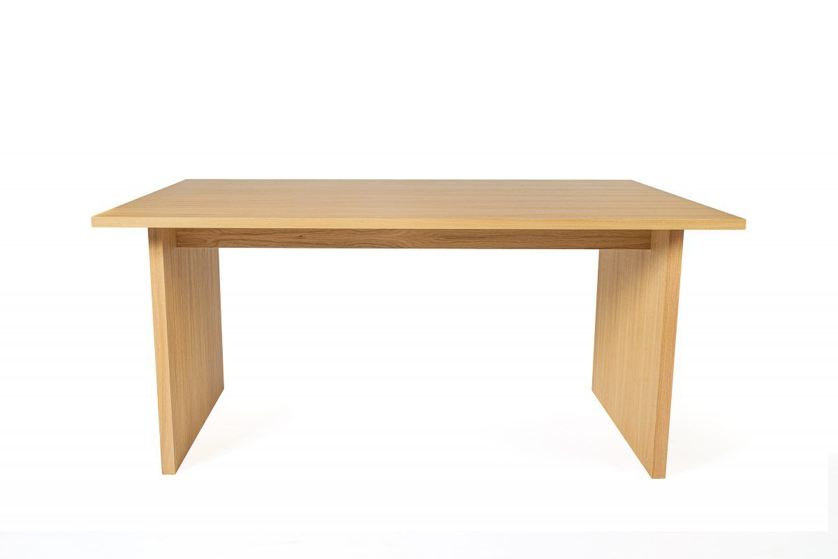 Expandable dining table made of oak veneered chipboard (PLP22). The base is made of oak veneer plywood. Solid oak legs. All parts are covered with matte transparent varnish. The height from the floor to the base is 65 cm. The table can be extended by 40 cm with a metal extension in the middle of the table. The extension can be stored under the table. Length from 140 to 180 cm. Can accommodate 6-8 persons. Easy assembly: simply install the legs using the M6 screws (included).
