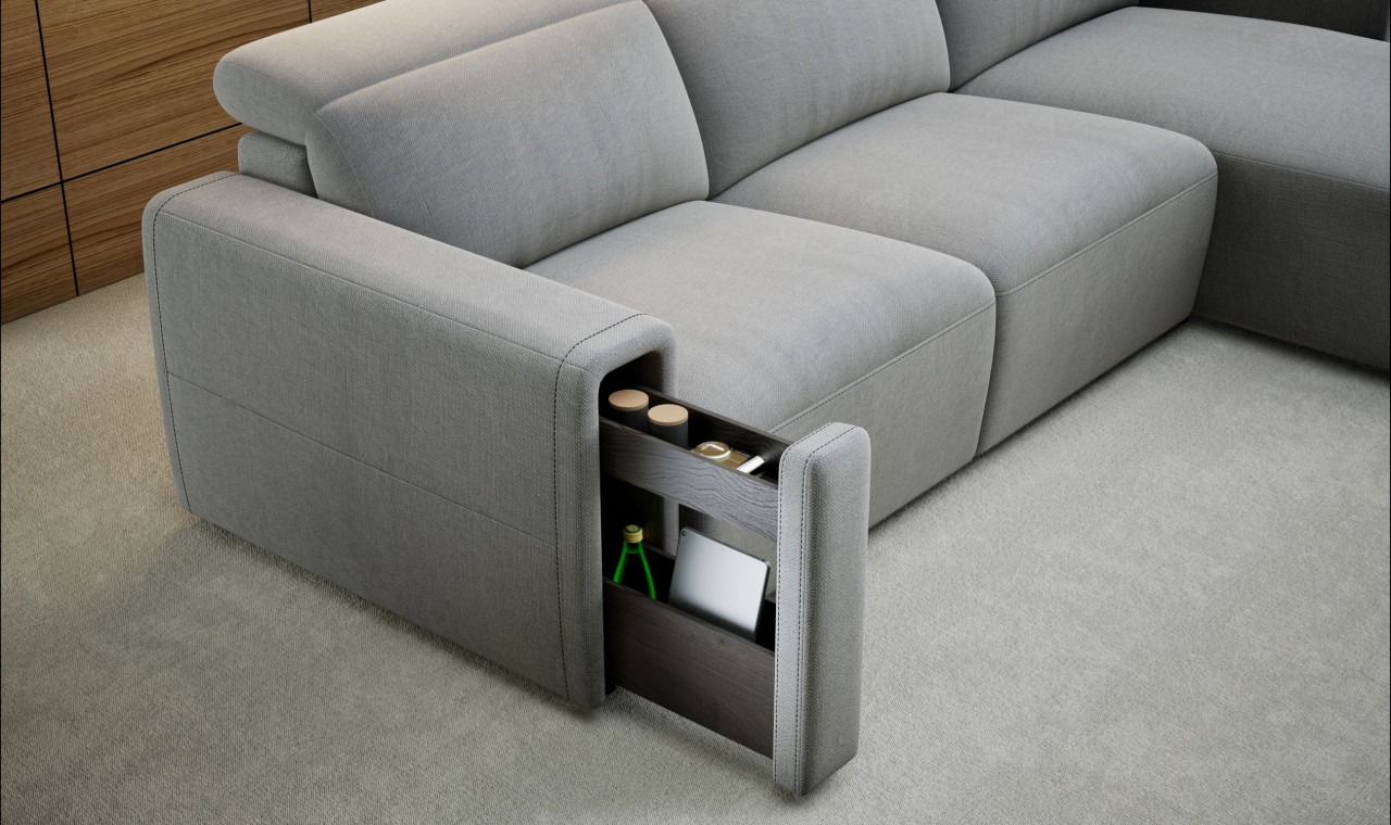 The Italian-type sleeping function easily transforms the sofa into a spacious bed, while the built-in bedding container offers extra storage for duvets and pillows.