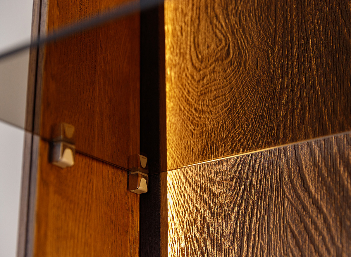 Oak wood is not only beautiful but also extremely durable. The refined finish, tip-on opening system, and handleless front make the cabinet easy and intuitive to use. The oiled surface protects the wood from wear, while stable wall mounting guarantees safety. This is a piece that looks light but provides long-lasting support. The glazed section with shelves is perfect for showcasing decorations, porcelain, or a book collection. The side shelf offers extra room for display or storage, while the integrated LED lighting gently highlights the contents. The Collodi display cabinet brings order and elegance to your interior – no unnecessary elements, just quality and thoughtful design.