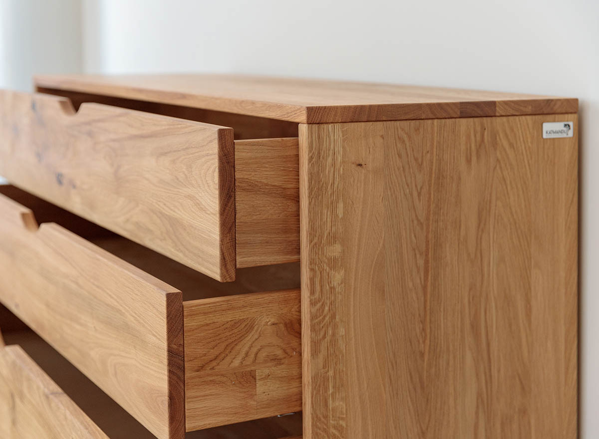 Simona 4S Oak Chest of Drawers The Simona 4-drawer chest of drawers combines functionality with the timeless durability of solid oak. The sturdy frame ensures stability even under heavy use, while the soft-close drawer system reduces noise and enhances everyday comfort. The oiled finish protects the surface and highlights the natural grain and knots, giving each piece a distinct character. Perfect for bedrooms or living spaces.