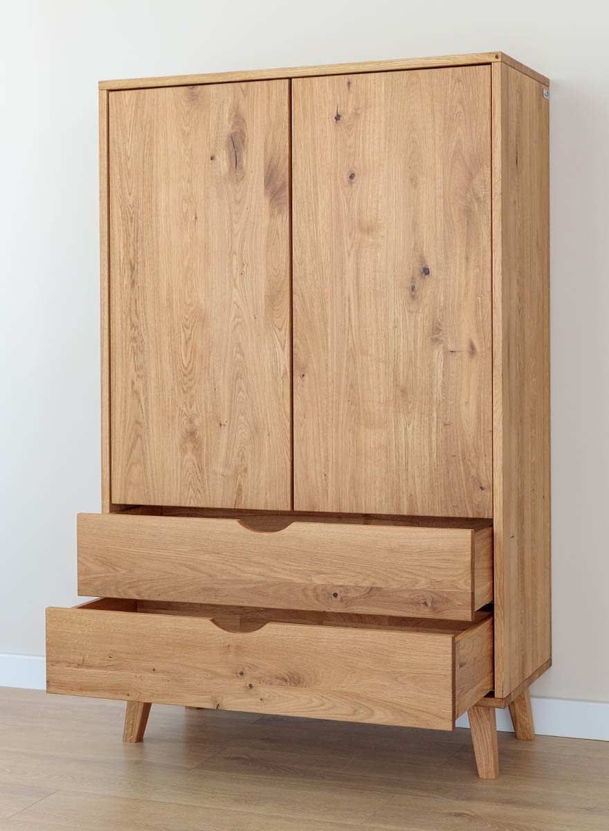 Simona Oak Linen Chest with Drawers This narrow yet spacious Simona linen chest offers a practical solution for storing linens and textiles. Crafted from solid oak, it ensures long-term durability and resistance to everyday wear. The oiled finish highlights the natural wood grain, while the soft-close system allows for quiet and effortless drawer use. Its clean and elegant design fits seamlessly into modern, Scandinavian, or classic interiors, making it both a functional and stylish addition to any bedroom.