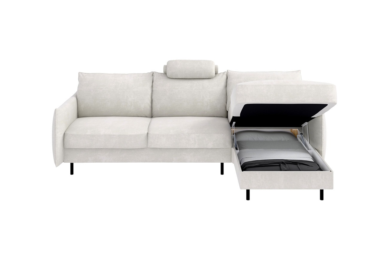 Угловой диван Lukka сочетает современный дизайн и высокий комфорт. Днём он служит удобным местом для отдыха, а вечером легко превращается в просторное спальное место. Вместительный ящик для постельных принадлежностей добавляет практичности. Коллекция доступна только в тканевой обивке, что делает Lukka отличным выбором для гостиной или современного интерьера.