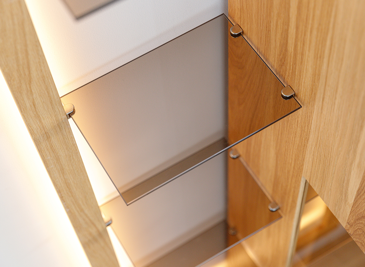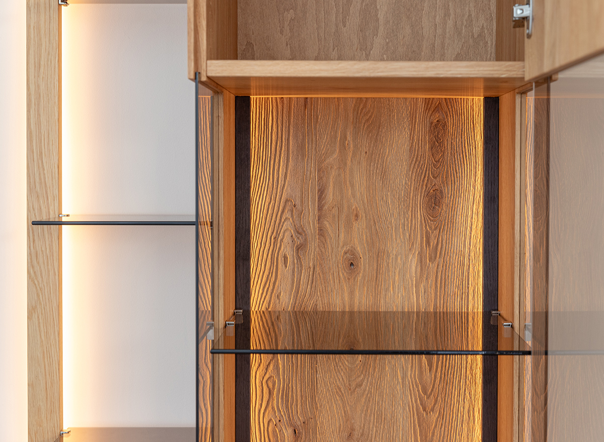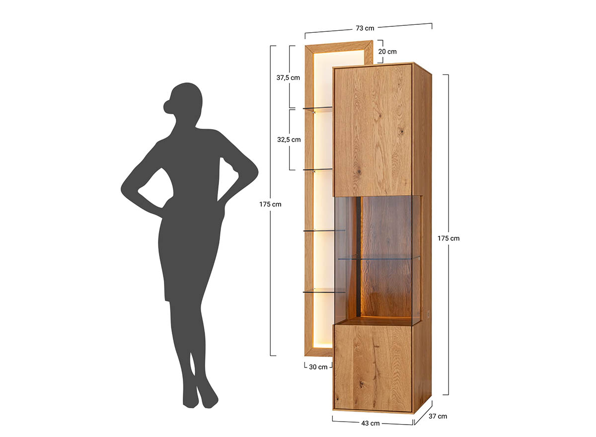 Изготовленная из маслом обработанного дикого дуба, витрина не только эстетична, но и долговечна. Внимание к каждой детали гарантирует надёжность и высокое качество на daudz gadiem вперёд.