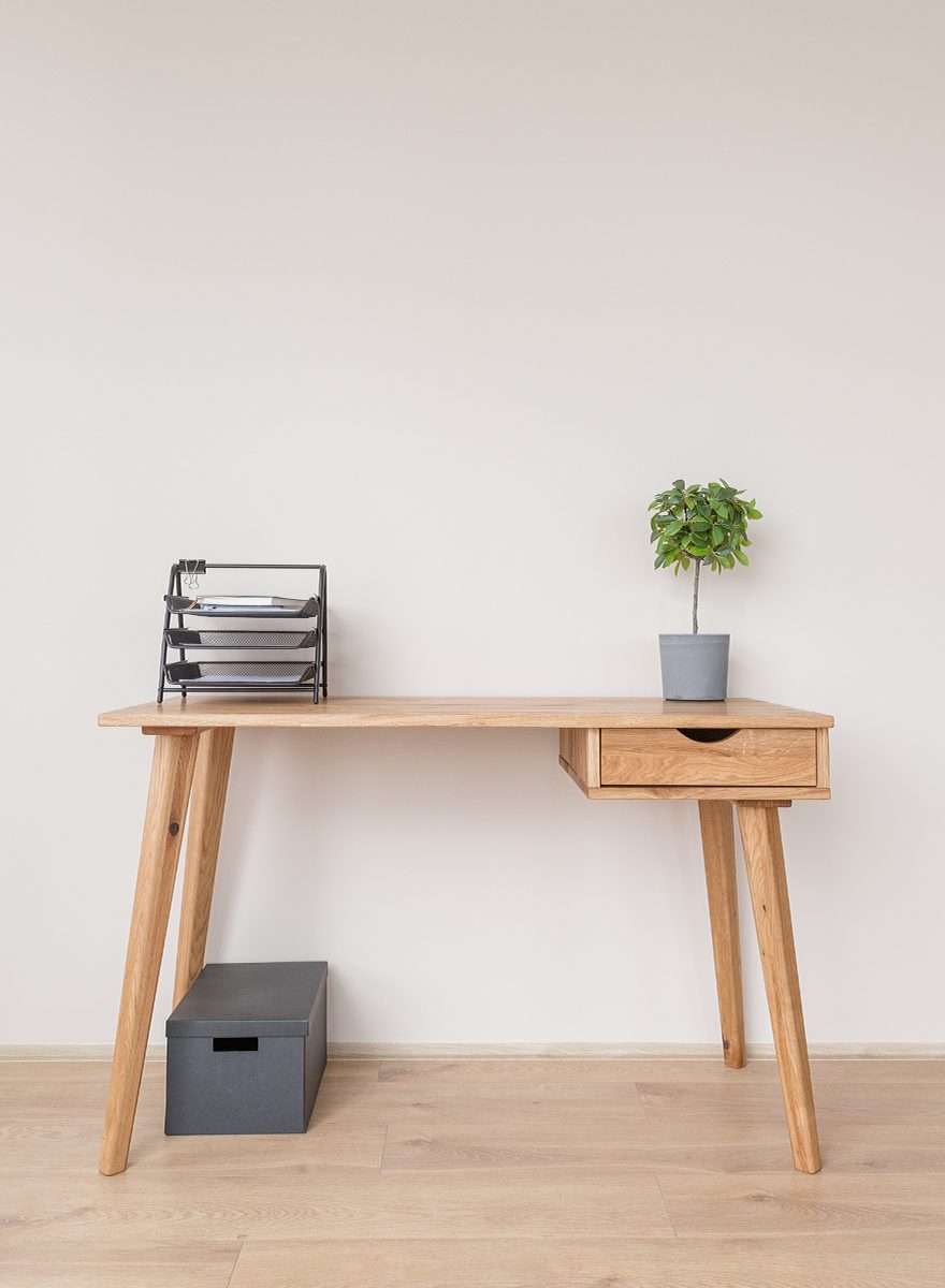 Письменный стол из дикого дуба 120 см Simona Письменный стол Simona из прочного дикого дуба — это сочетание устойчивой конструкции и минималистичного дизайна. Масляная отделка подчеркивает естественную структуру древесины, придавая мебели теплый и натуральный вид. Стол оснащён выдвижным ящиком на шариковых направляющих, в котором удобно хранить канцелярские принадлежности или документы. Компактные размеры делают его отличным выбором для домашнего офиса, детской комнаты или как туалетный столик.
