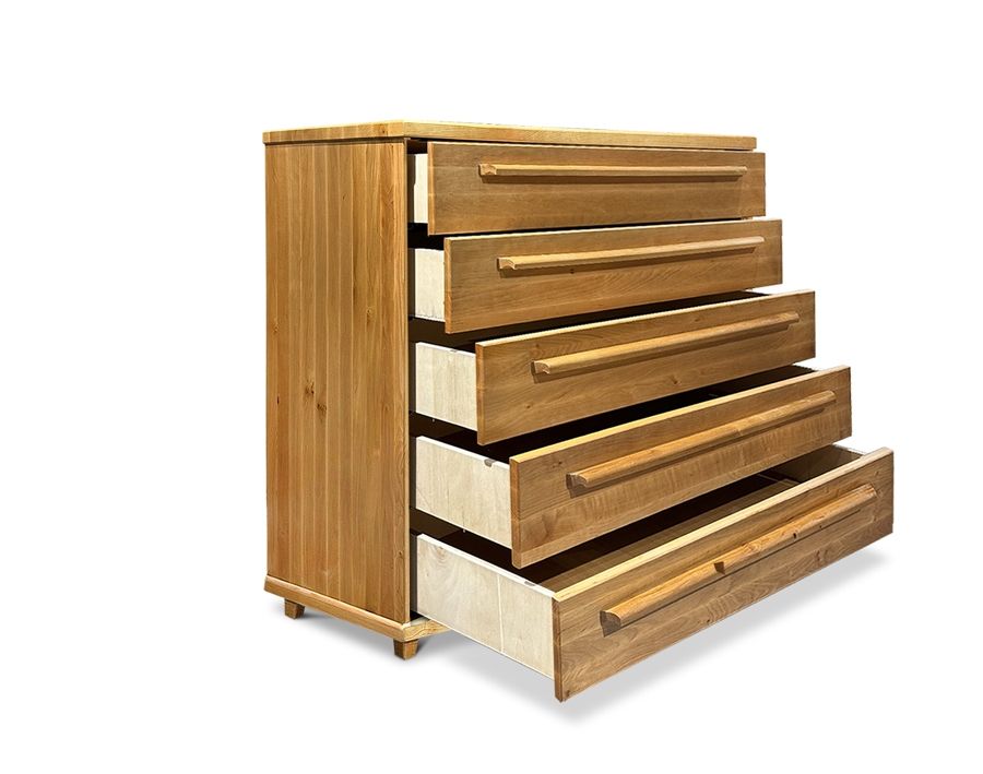 Kumodi iespējams pasūtīt ar 5 vienāda izmēra atvilktnēm, vai ar 4 atvilktnēm- 2 apakšējās atvilktnes tiek aizstātas ar 1 lielu.
